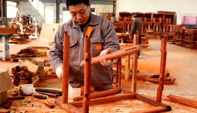 流程二木工工序 板材干燥完成后,就可以進(jìn)入正式的制作工序了。這一步是紅木家具制作最主要的步驟,也就是紅木家具制作廠家所說(shuō)的木工工序。